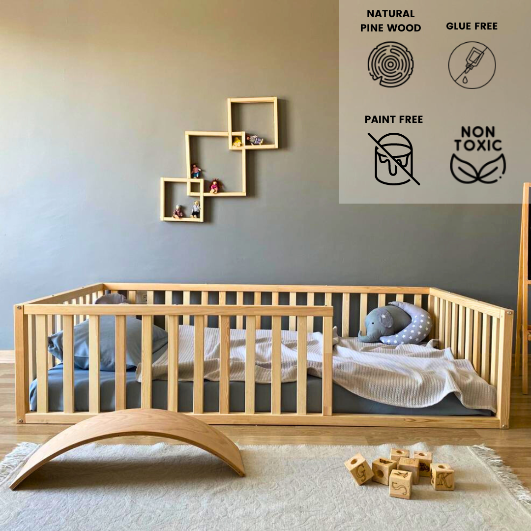 Montessori Natural Wooden Child Bed - Crib (52"x 27.5") / 17"